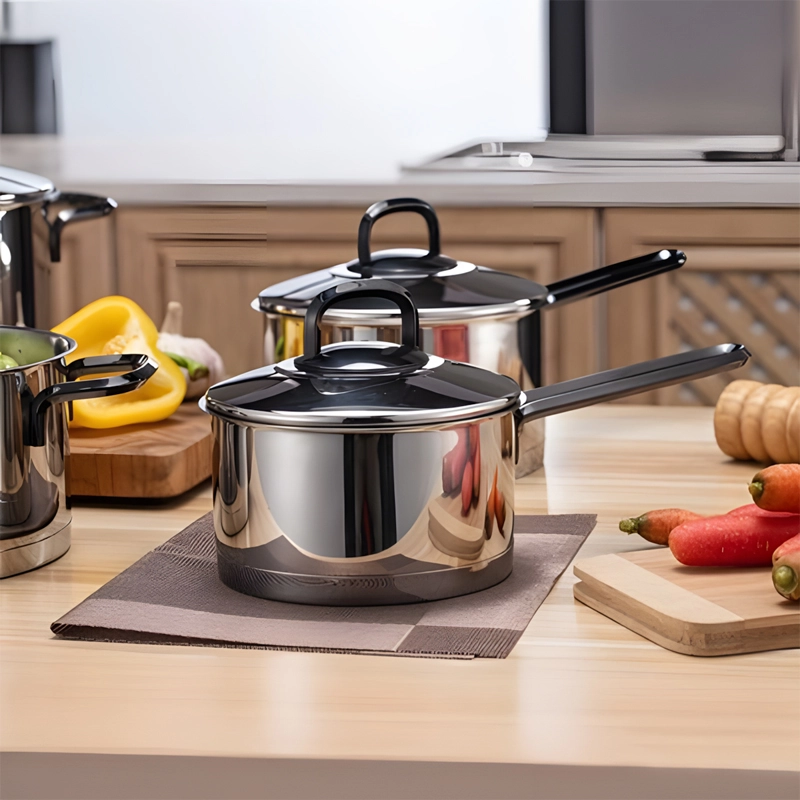 Tri-Ply Disc Base for Fast, Even Heat Distribution:Aluminum core bonded between stainless layers delivers consistent temperature across the entire cooking surface—ideal for delicate reductions.